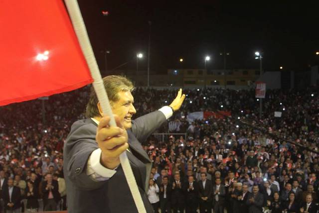 Lima, 30 octubre (peruanosnews.com).- Con un multitudinario mitin, esta noche el líder del Partido Aprista Peruano, Alan García, lanzó oficialmente su candidatura presidencial para las próximas elecciones, dando a conocer algunas propuestas de su Plan de Gobierno que ejecutaría de ser elegido presidente de la República para el período 2016 – 2021.