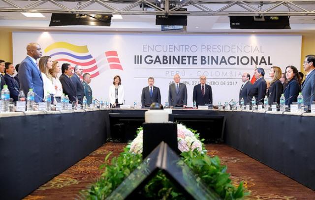 Arequipa, 27 enero 2017 (Peruanosnews.com).- Con la participación de los presidentes de Perú, Pedro Pablo Kuczynski, y de Colombia, Juan Manuel Santos, y de los ministros de Estado de ambos países, se desarrolla hoy en Arequipa, el Encuentro Presidencial y III Gabinete Binacional de Ministros Perú – Colombia.