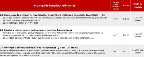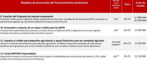 – Las mejores condiciones para el gasto privado por 5,168 millones de soles, que representan 0.54% del PBI de este año, tendrán un impacto de 0.5 puntos porcentuales en el PBI del 2022 y de 0.3 puntos en el PBI del 2023.