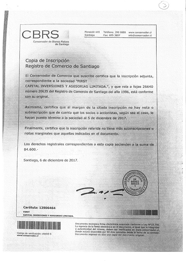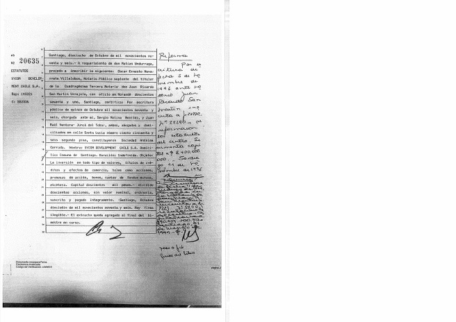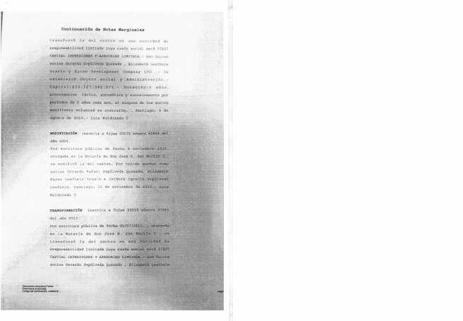 Asimismo mostró un documento de la constitución de la referida empresa, de propiedad exclusiva del señor Gerardo Sepúlveda.