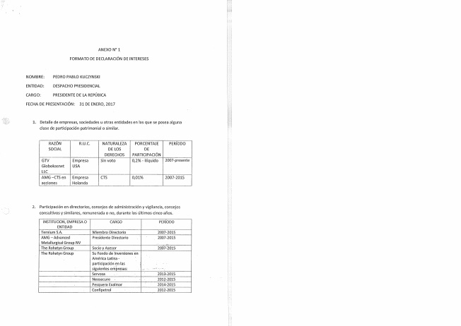 El presidente Pedro de la República, Pablo Kuczynski, presentó una serie de documentos para defenderse de las acusaciones que lo vinculan con la empresa brasileña Odebrecht.
