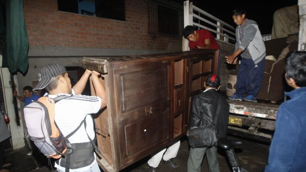 Efectivos de la Policía Nacional ayudaron a algunas familias del sector La Perla, en Chosica, a evacuar sus viviendas, ante el incremento del caudal del río Rímac, por las lluvias registradas en la sierra central del país.