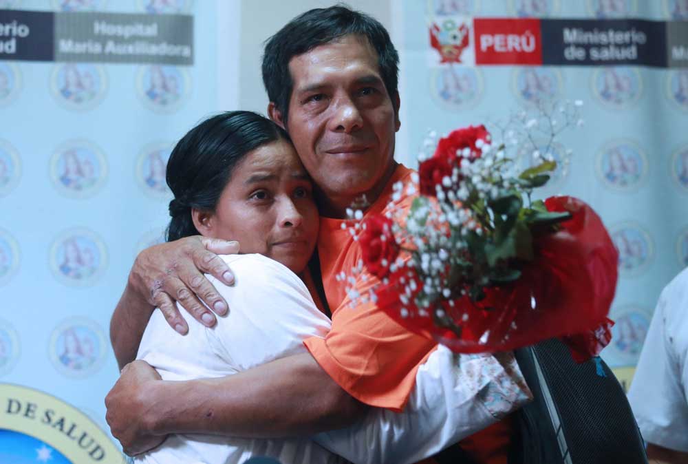 Su esposo, Armando Rivera, en medio de la conferencia de prensa le entregó un ramo de flores, la abrazó y le dio un beso; agradeció al hospital y a su familia y vecinos por el apoyo brindado.