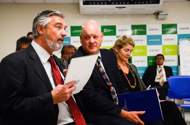 El director ejecutivo del Servicio Nacional Forestal y de Fauna Silvestre (Serfor), John Leigh Vetter, expresa al representante de Usaid el agradecimiento por los exitosos resultados del Proyecto Perú Bosquez, en el sector forestal peruano.