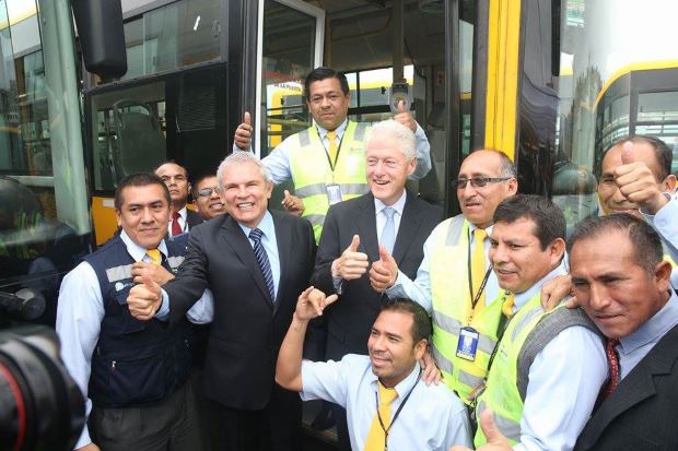 “Estos buses transportan 700 mil personas al día y evitan que más de 200 mil toneladas de gases contaminantes salgan al medio ambiente. Además los semáforos inteligentes les están ahorrando a Lima más de 1 millón de dólares al día”, afirmó Bill Clinton.
