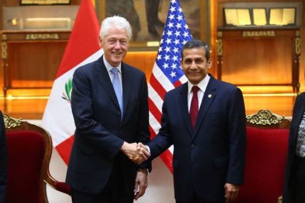 Lima, 11 noviembre (peruanosnews.com).- En el marco de una visita que realiza por América Latina, el expresidente de Estados Unidos, Bill Clinton, llegó hoy a Lima para suscribir un convenio con el alcalde de Lima, entrevistarse con el presidente Ollanta Humala y monitorear el avance del proyecto social Chakipi Acceso, que desarrolla en nuestro país su organismo The Clinton Foundation and Clinton Global Initiative.