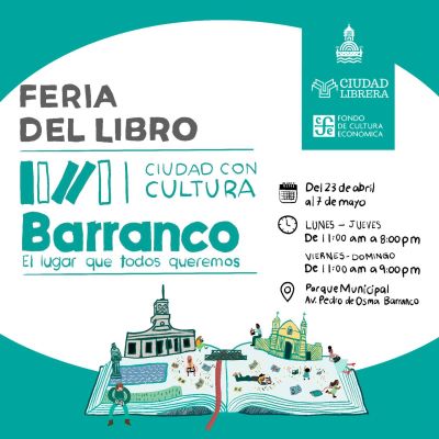 En el marco de las celebraciones por el Día Internacional del Libro, la Municipalidad de Barranco junto con Ciudad Librera en alianza con el Fondo de Cultura Económica, se unen para llevar a cabo la Feria del Libro “Ciudad con cultura: Barranco, el lugar que todos queremos”.