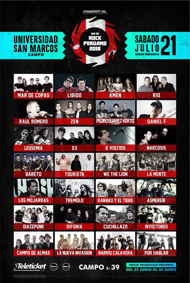 Amantes del Rock se acerca el evento esperado por muchos el “Festival Día de ROCK Peruano 2018” que contará con 2 escenarios estelares.