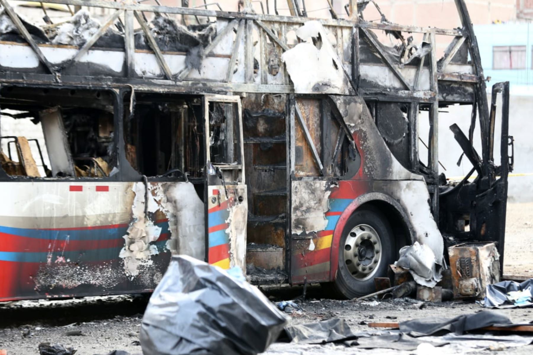 Así quedó bus incendiado en Fiori, donde perecieron 17 personas. Foto: ANDINA/Norman Córdova
