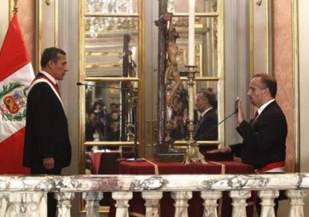 El presidente Ollanta Humala toma el juramento de estilo al nuevo ministro Francisco Adolfo Dumler Cuya.