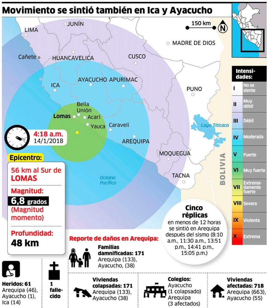 A las 4:18 de la mañana, en pleno verano, cuando todos dormían, la tierra tembló en Arequipa, Ica, Ayacucho. También en Lima y Huancavelica, pero a una menor intensidad.