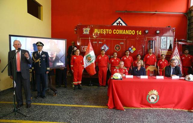 El presidente Pedro Pablo Kuczynski adelantó que en el presupuesto del próximo año, se dará más apoyo material y logístico al Cuerpo General de Bomberos Voluntarios del Perú.