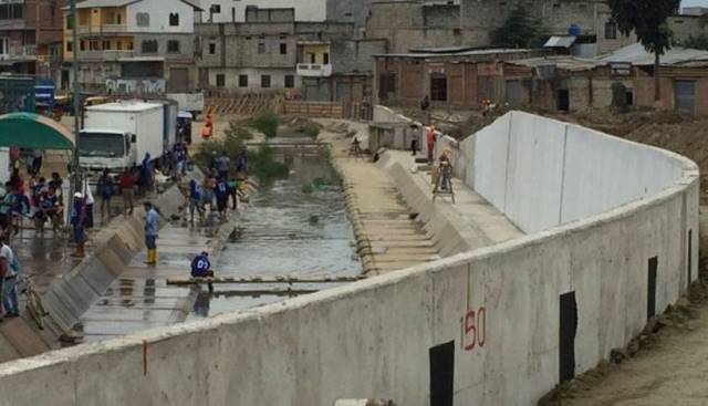 Este es parte del muro que se construye en el Parque Lineal en la franja derecha del Canal Internacional de Zarumillla, a pesar de los pedidos formulados por el Perú para que se paralice la obra.