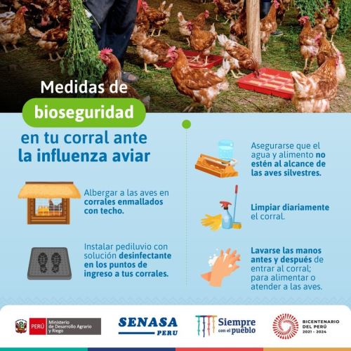 Jorge Mantilla Salazar, médico veterinario y director de la Subdirección de Control y Erradicación de Enfermedades del Senasa, afirmó que esta medida forma parte de la emergencia sanitaria ante el tipo de virus considerado “altamente patógeno” y para evitar que la enfermedad, de gran letalidad en las aves, se traslade a otras localidades y afecte a las granjas comerciales o de traspatio.