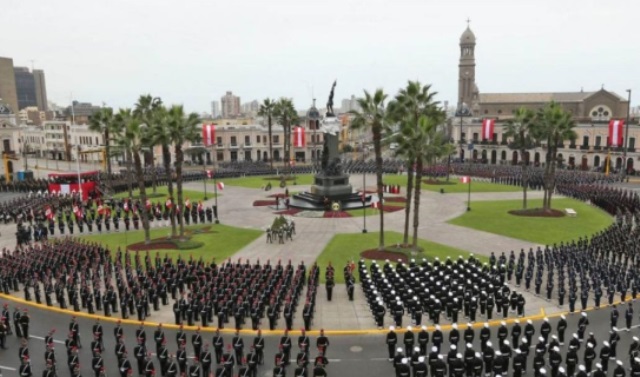 La Plaza Francisco Bolognesi de Lima lució imponente con la presencia de nuestra Fuerzas Armadas y Policía Nacional del Perú, cuyos miembros renovaron su fidelidad patriótica.