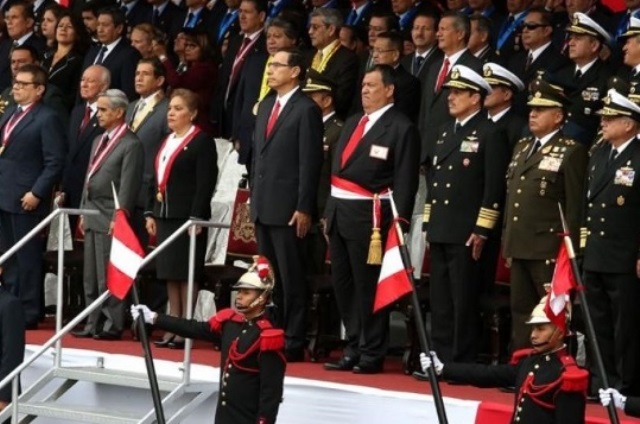 El acto se inició a las 9:30 de la mañana con los batallones de las Fuerza Armadas y Policía Nacional del Perú, acantonados alrededor de la plazuela, y con la presencia del ministro de Defensa, Jorge Nieto; la presidenta del Congreso de la República, Luz Salgado; y el presidente del Poder Judicial, Duberlí Rodríguez.