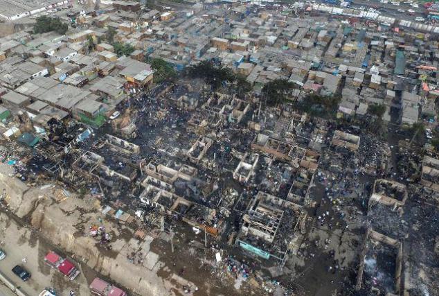 Lima, 04 noviembre.- Más de 300 viviendas de la comunidad shipibo-koniba de la zona de Cantagallo, en Lima, la mayoría construidas con madera y calaminas, quedaron reducidas a cenizas durante el dantesco incendio que se desató después de la medianoche en un mercado aledaño, pero que luego se expandió a esa zona de viviendas vulnerables.