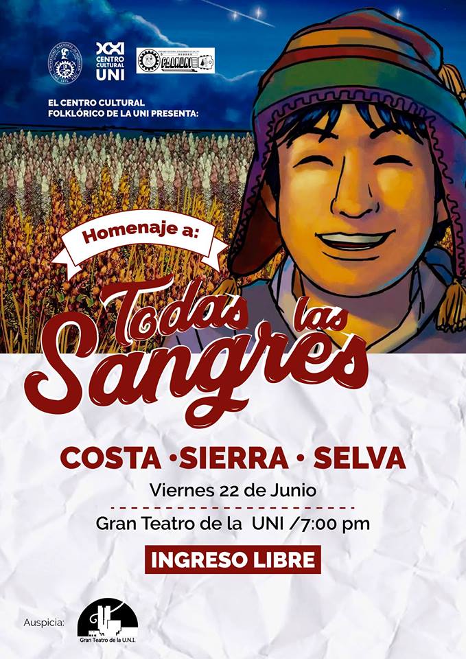 Con motivo de las celebraciones por el Día del Campesino, el Centro Cultural Folklórico de la Universidad Nacional de Ingeniería los invita a participar del “Homenaje a Todas Las Sangres”.