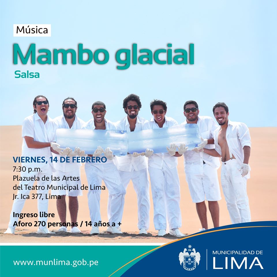 ¡Ven y baila junto con Mambo Glacial! Orquesta que rescata estilos de la salsa antigua con elementos de la Lima moderna apostando por nuevos sonidos y contenidos jugando con la ironía y la diversión.