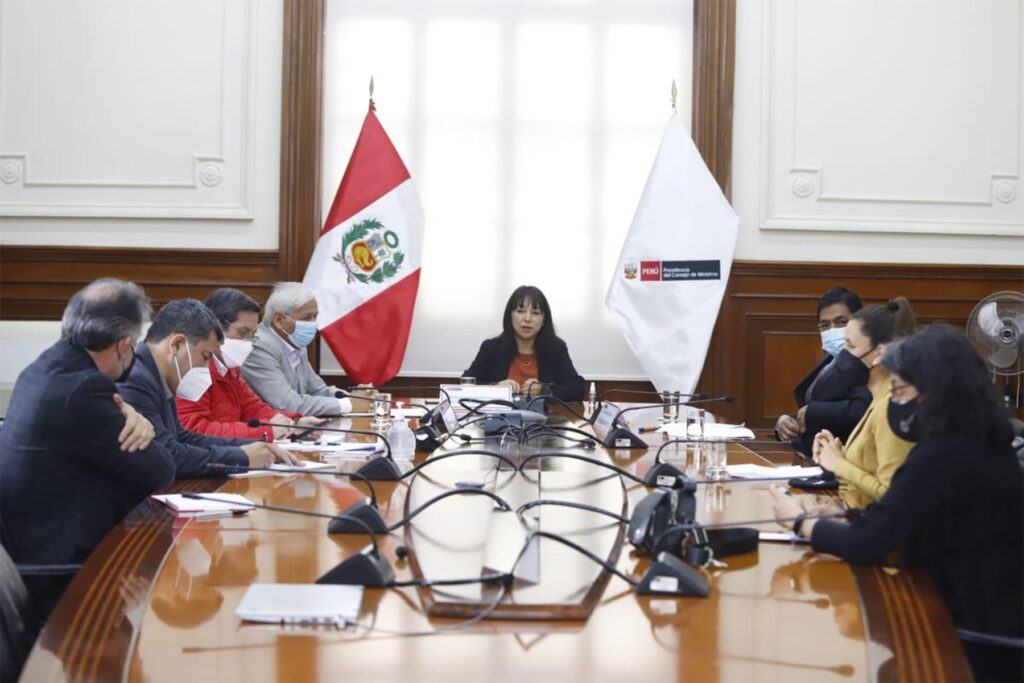 La jefa del Gabinete Ministerial, Mirtha Vásquez, encabeza esta tarde una reunión con altos funcionarios del Ejecutivo en la cual se aborda la situación de las empresas mineras.