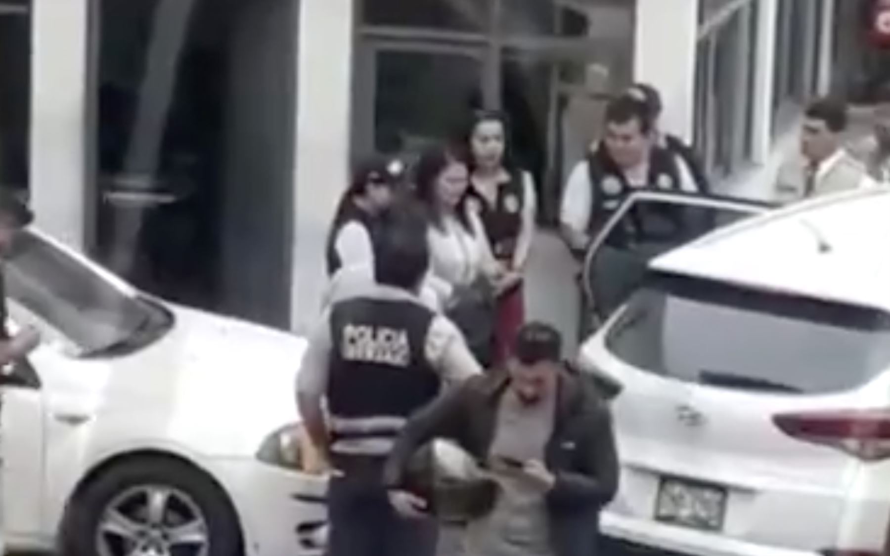 En las primeras imágenes durante su detención en las que se muestra a Keiko Fujimori Higuchi resguardada por la policía y cubriendo sus manos, al parecer esposadas. Este es el video difundido por el ciudadano Gerardo Salas Gonzáles en Facebook: