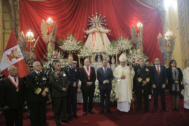 Posteriormente, se realizó la Solemne Misa y Te Deum en la Basílica de la Virgen de la Merced, ubicada en el centro de Lima, bajo el oficio del obispo castrense del Perú, Monseñor Juan Carlos Vera Plasencia.