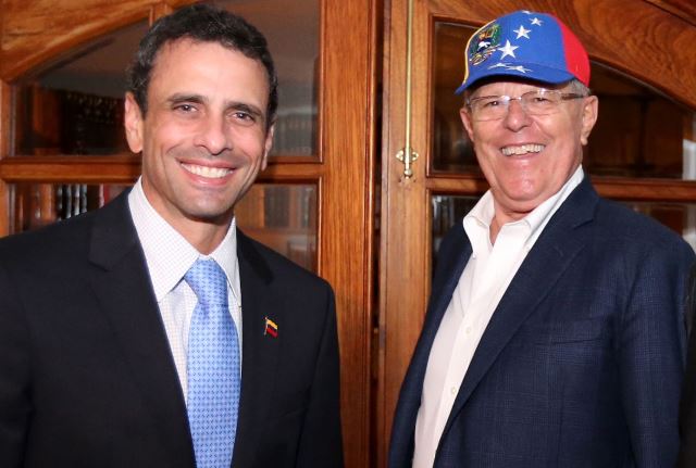 Lima, 11 agosto (Peruanosnews.com).- El presidente de la República, Pedro Pablo Kuczynski, recibió esta noche en su domicilio de San Isidro al líder de la oposición venezolana y actual gobernador del estado de Miranda, Henrique Capriles, quien se encuentra de visita en nuestro país buscando el respaldo político y ciudadano para que Venezuela retorne a la democracia.