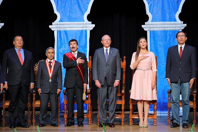 El mandatario estuvo acompañado por el primer vicepresidente de la República, Martín Vizcarra; y los ministros de la Mujer y Poblaciones Vulnerables, Ana María Choquehuanca; y Defensa, Jorge Nieto.