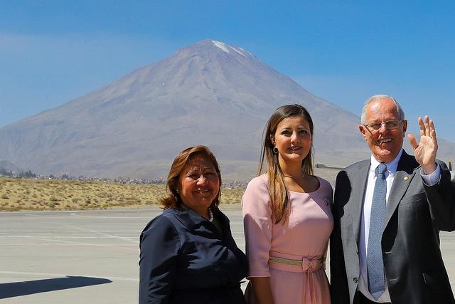 Teniendo como fondo el fabuloso Misti, volcán que identifica a la bella “ciudad blanca”, el presidente Pedro Pablo Kuczynski se despide de Arequipa acompañado de la ministra de la Mujer, Ana María Choquehuanca, y de la gobernadora regional Yamila Osorio.