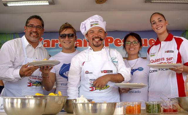 En el lanzamiento de la campaña, en la playa Agua Dulce de Chorrillos, las clases de cocina saludable estuvieron a cargo de los chefs Kumar Paredes y Andrew Gibbons, quienes enseñaron al público a preparar: pota a la chalaca, bonito piurano con wantán, solterito con filete de atún y albóndigas de pescado en salsa boloñesa.