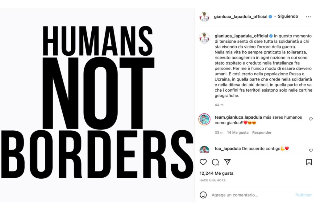 El delantero nacional Gianluca Lapadula brindó su solidaridad a las personas que sufren las consecuencias de la operación militar rusa en territorio ucraniano, recordando que en su vida siempre practicó la tolerancia en los países donde le ha tocado jugar.