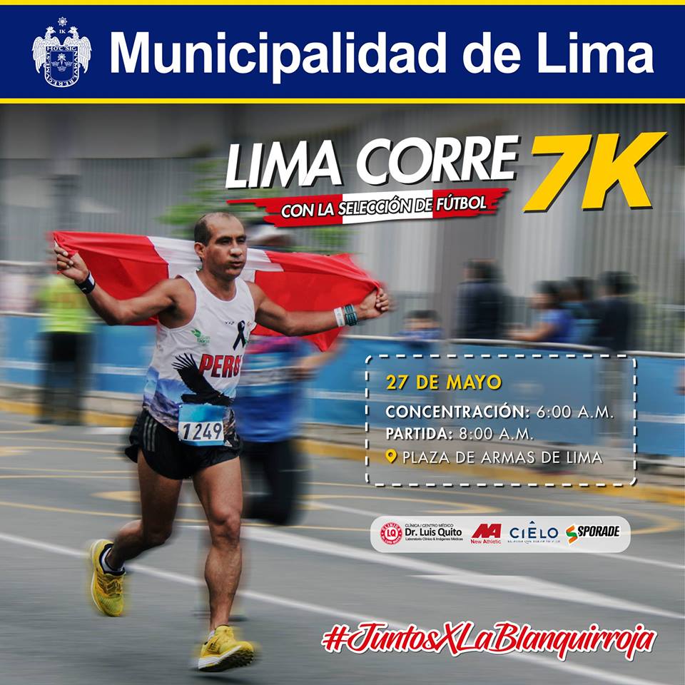 La Municipalidad de Lima, a través de la Gerencia de Educación y Deportes, organizan la carrera LimaCorre Con La Selección de Fútbol 7k este 27 de mayo.