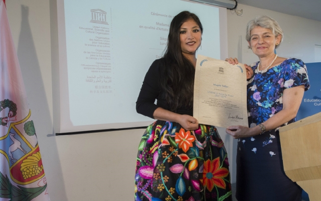La artista peruana Magaly Solier recibió la importante designación de manos de la directora general de la Unesco, Irina Bokova.