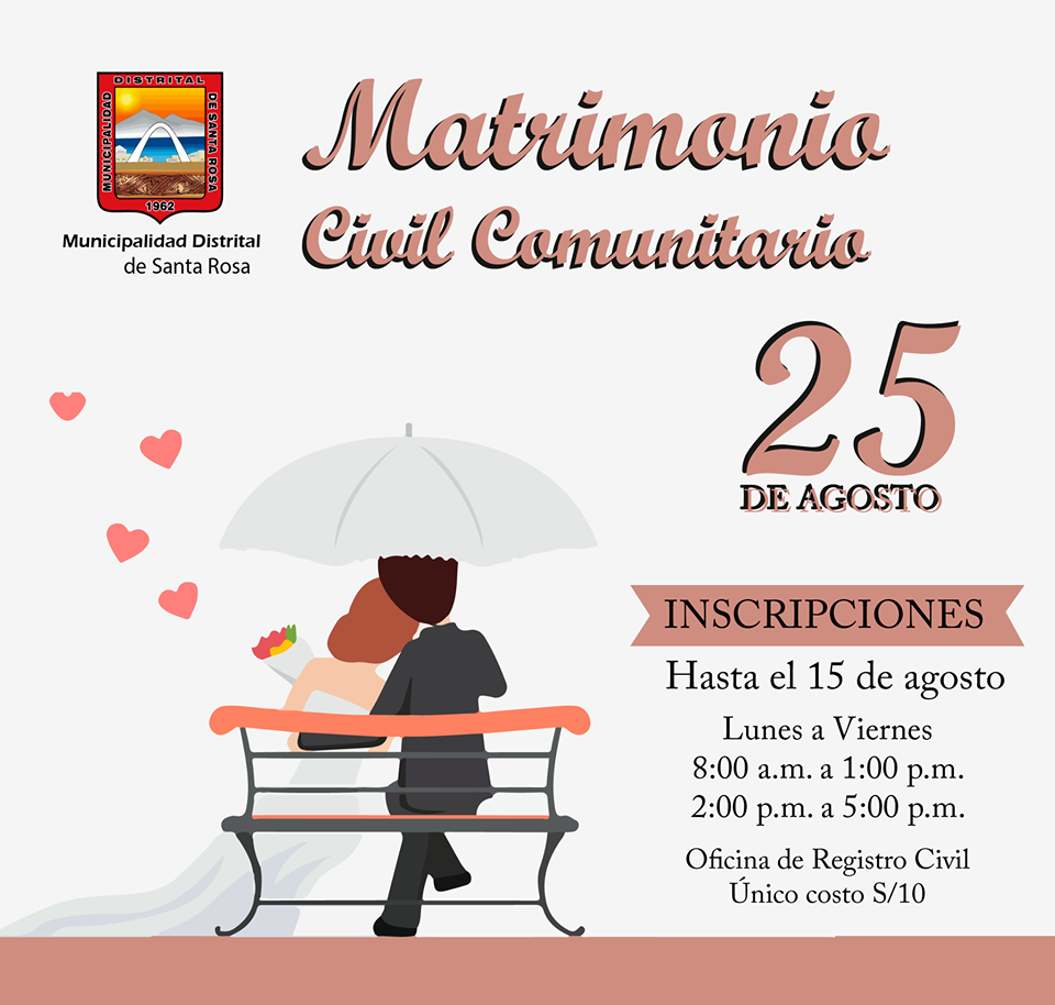 El próximo 25 de agosto, la Municipalidad de Santa Rosa esta organizando un “Matrimonio Civil Comunitario”.
