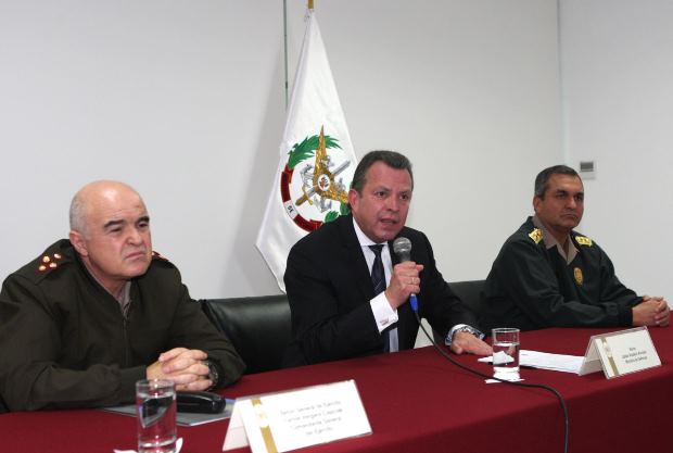 Acompañado por el comandante general del Ejército, General Carlos Vergara Ciapciak, y el director de la Policía Nacional del Perú, General Vicente Romero Fernández, el ministro detalló que la detención de los miembros del Ejército se produjo luego de hallarse una presunta manipulación de actas de entrega de granadas y municiones que salieron del polvorín Cruz de Hueso y que no habrían llegado a su destino final.