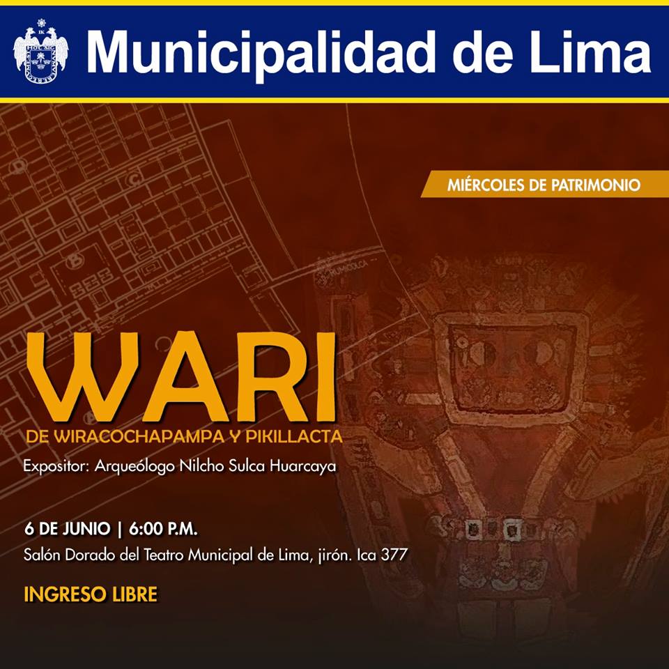La Municipalidad de Lima te invita a conocer un poco más de nuestra historia prehispánica asistiendo a la conferencia “Wari de Wiracochapampa y Pikillacta”, en el Salón Dorado del Teatro Municipal.