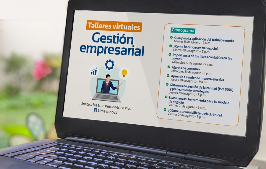 Lima, 18 de agosto del 2020.- Con el objetivo de contribuir al desarrollo de los pequeños empresarios, emprendedores y ciudadanos que quieran iniciar un negocio propio, la Municipalidad de Lima ofrecerá esta semana talleres virtuales sobre gestión empresarial, marketing, finanzas, innovación y digitalización.