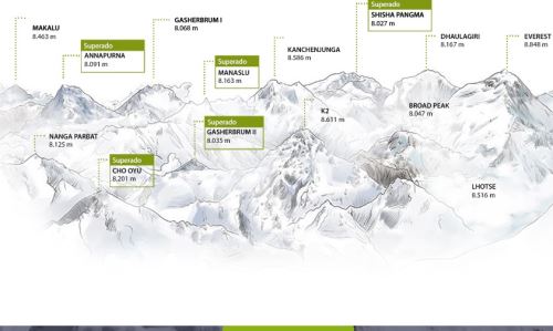 De haberlo conseguido, hubiera sido su sexta montaña con más de 8 mil metros de altitud en escalar, tal como lo hizo antes con el Annapurna (8091m), el Cho Ouy (8,201m.), el Manaslu (8163m.), el Gasherbrum II (8035m) y el Shisha Pangma (8,027m.), todos en el Himalaya.