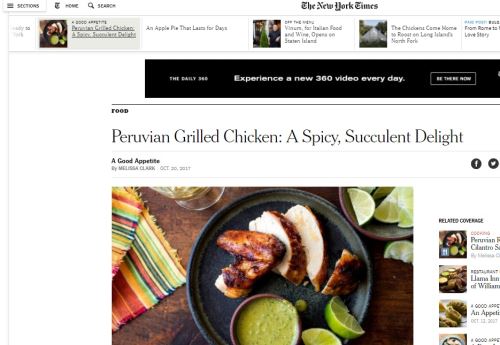“El pollo peruano vale la pena aprender a hacerlo en casa, porque pocas cosas superan la piel crujiente de un pollo asado en el hogar”, refiere en su nota la periodista Melissa Clark.