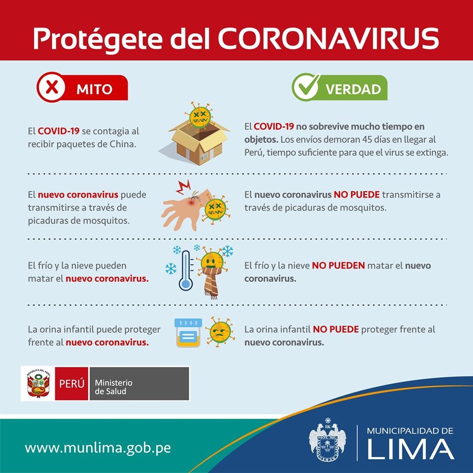 ¡No te dejes llevar por los mitos! Posted by: Peruanosnews1 Conoce cuáles son las verdades sobre el #coronavirus para prevenir su contagio en este enlace ► Coronavirus COVID-19 2020-04-15 Peruanosnews1