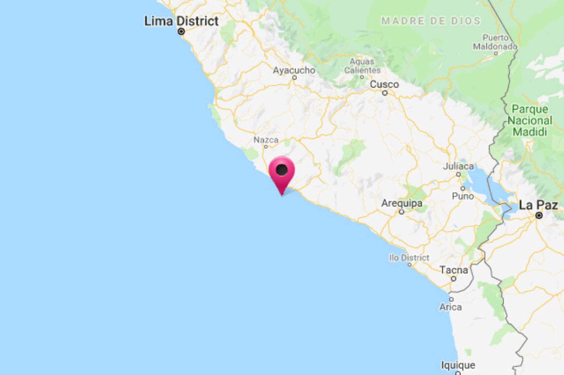 El IGP precisó que el epicentro del movimiento telúrico se ubicó en el océano Pacífico, a 64 kilómetros al suroeste de la localidad de Lomas, provincia de Caravelí. El sismo se sintió con una intensidad III-IV en Lomas.