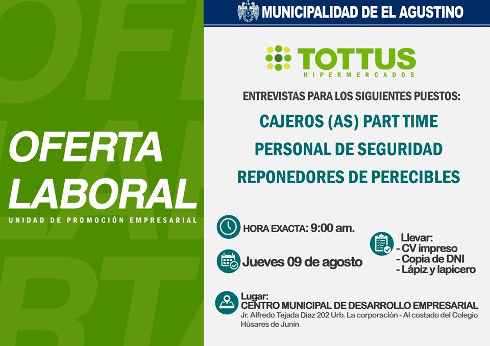 ¡Oferta Laboral! – El Agustino