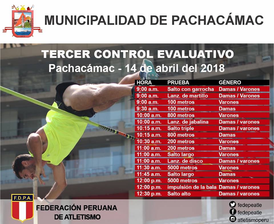 El Estadio Municipal Pachacámac será sede del III Control Evaluativo que organiza la Federación Deportiva Peruana de Atletismo, el cual congregará a deportistas de todo el país.