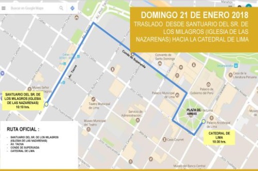 Desde Las Nazarenas se movilizará hacia la Catedral de Lima, tomando la avenida Tacna y el jirón Conde de Superunda.