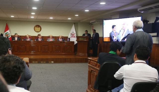 Lima, 08 marzo (peruanosnews.com).- El Pleno del Jurado Nacional de elecciones (JNE) desarrolló esta tarde una audiencia pública, para escuchar los alegatos de defensa de los partidos Alianza Para el Progreso y Todos por el Perú, en contra de las resoluciones del Jurado Electoral Especial (JEE) de Lima Centro 1, que el viernes pasado dejó fuera de la contienda electoral a sus candidatos César Acuña y Julio Guzmán.