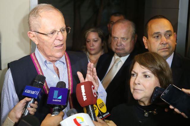 El presidente electo Pedro Pablo Kuczynski ofreció declaraciones a la prensa, tras recibir esta noche la visita de Mitzy Capriles de Ledezma, esposa del detenido alcalde de Caracas, Antonio Ledezma, opositor al actual régimen venezolano.