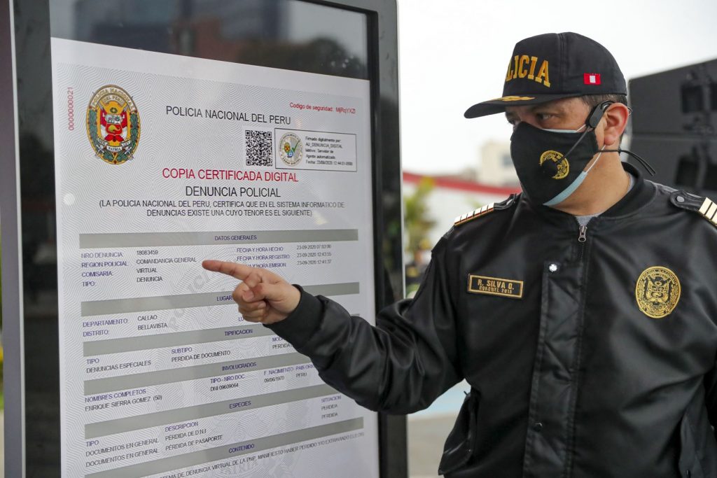 “Anualmente se reportan más de 800,000 denuncias por pérdida o robo de documentos. Pero ahora la novedad es que las personas podrán sacar un certificado de su denuncia policial desde su casa y sin necesidad de ir a una comisaría. Esto permitirá proteger su salud y la de su familia”, subrayó Silva a la agencia Andina.
