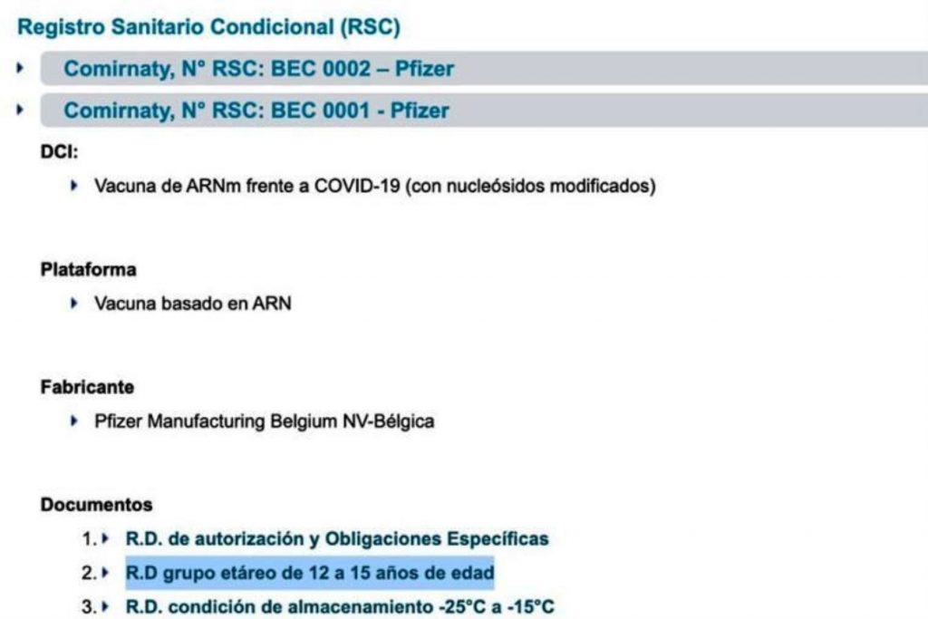 Por su parte, Canal N mostró partes de la Resolución Directoral 6478, en la que se autorizaría el uso de emergencia del fármaco Pfizer en menores de 12 a 15 años.