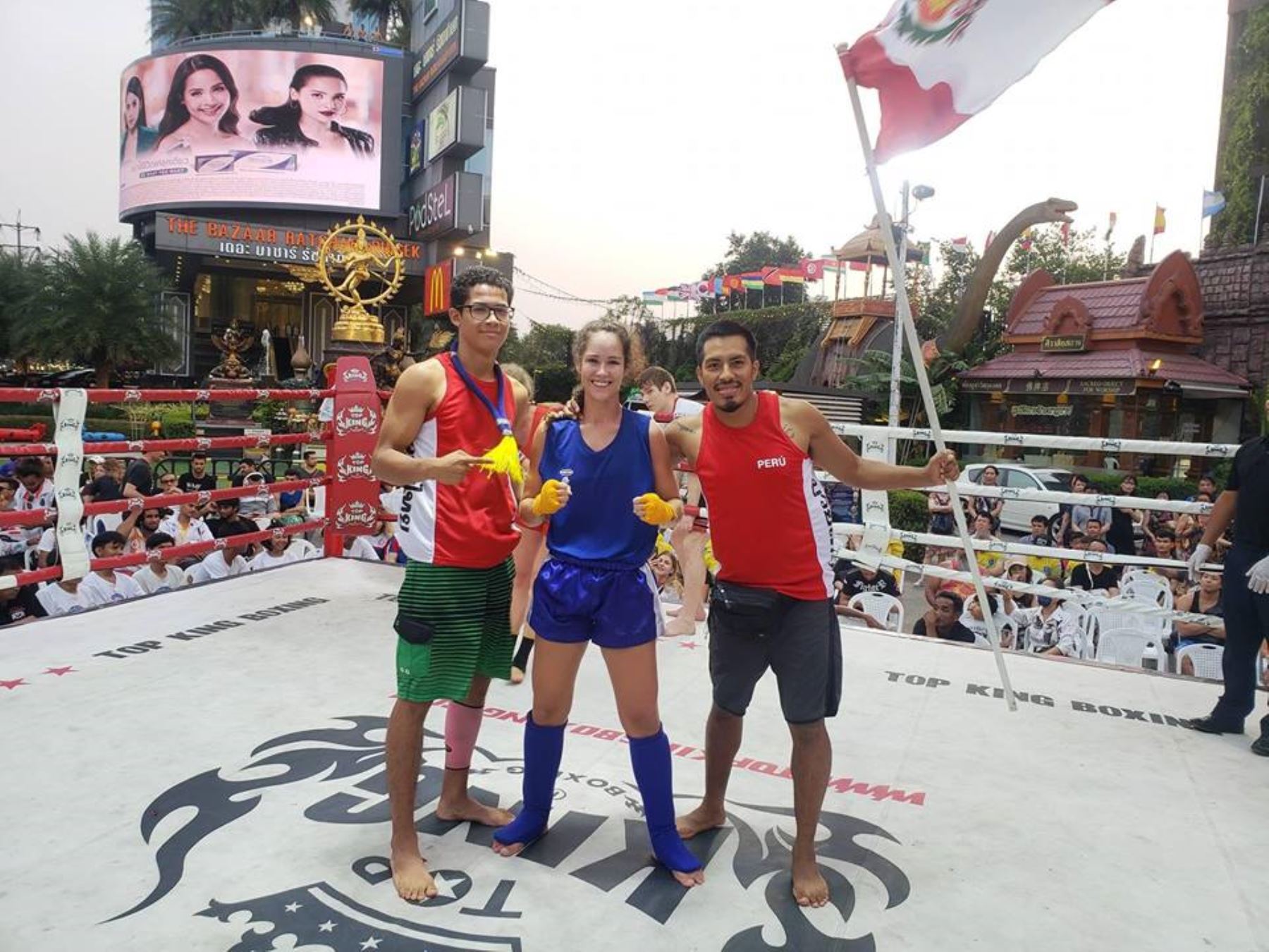 Eduardo Henostroza, Piero Pineda y Fiorella Conroy se convirtieron en campeones mundiales de muay thai, en la lejana Tailandia. Foto: ANDINA/ Difusión.