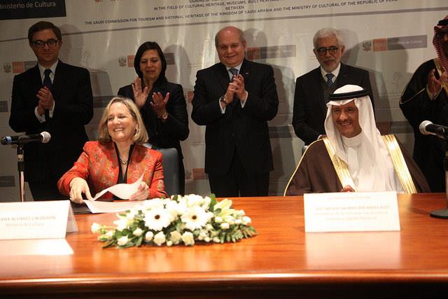 Lima, 17 setiembre (peruanosnews.com).- La ministra de Cultura, Diana Álvarez Calderón y el príncipe Sultán Bin Salman Bin Abdulaziz Al-Saud, presidente de la Comisión Saudí de Turismo y Patrimonio Nacional del Reino de Arabia Saudita, de visita oficial en nuestro país, firmaron un acuerdo en el cual ambos países desarrollarán acciones de cooperación en los campos del patrimonio cultural, museos, patrimonio edificado e industrias tradicionales.